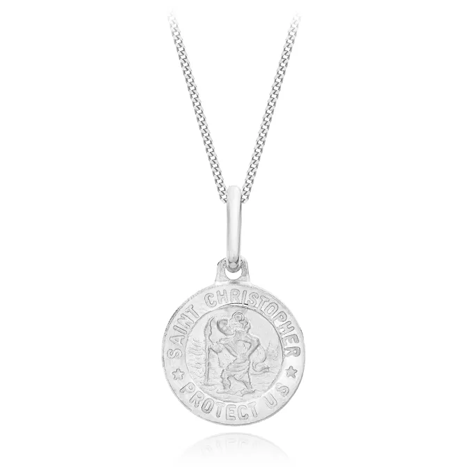 9CT WHITE GOLD ST CHRISTOPHER ROUND SATIN PENDANT