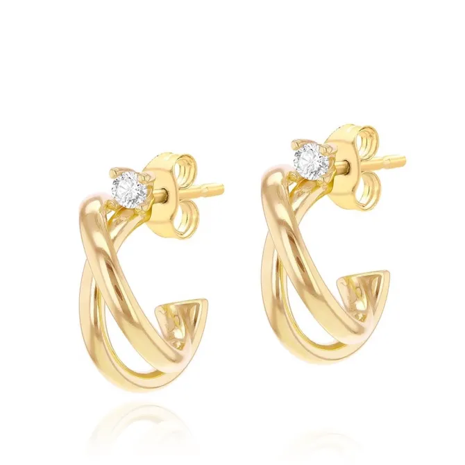 9CT YELLOW GOLD CROSSOVER CZ HALF HOOP STUD EARRINGS