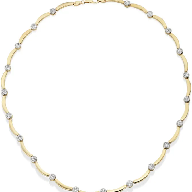 This stylish and sophisticated Necklace is crafted from 9k Gold and is completely studded with cubic zirconia to add extra beauty & outstanding smooth finish. This chic & sleek Necklace approximate measures in Length 17″.