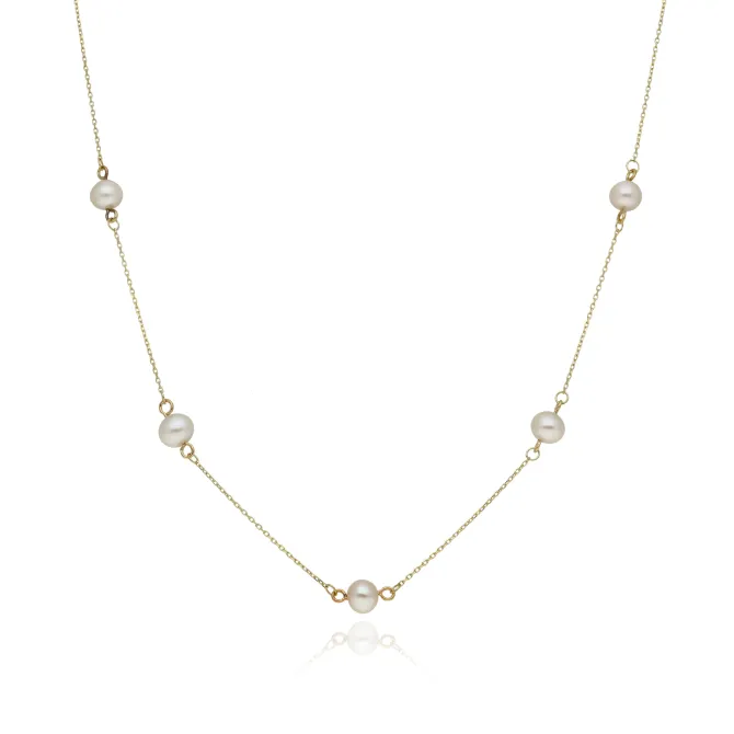 9CT YELLOW GOLD PEARL STATION ADJUSTABLE NECKLACE
