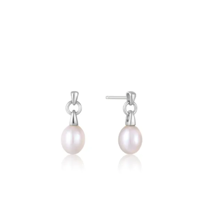 Get creative with your style this season with a drop stud earring that looks as luxury as it feels to wear. A single iridescent pearl is suspended from on-trend shiny silver chain link, finished with a simple stud. Keep your look simple or stack your drop studs with a row of delicate everyday basics. Also available in Yellow Gold.