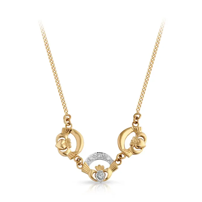 Claddagh 9K Gold CZ Claddagh Necklace in Pave stone setting