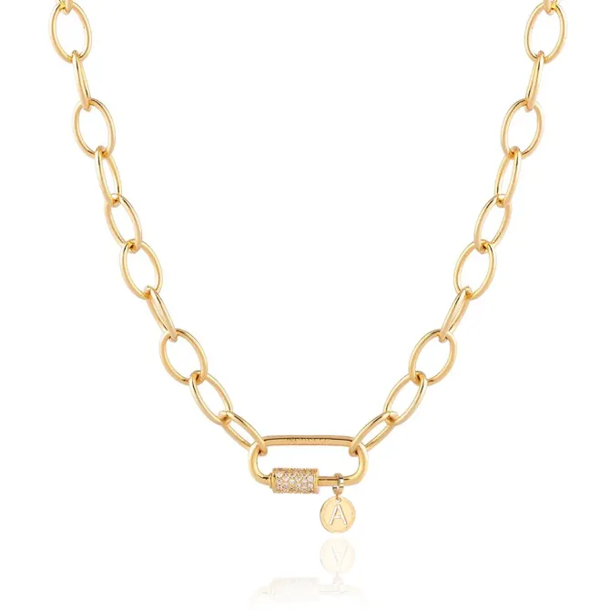 The Yellow Gold plated Necklace catches the light with every movement creating a beautiful sparkle. This beautiful chain is personalised by adding any initial or charm. Also available in Silver.