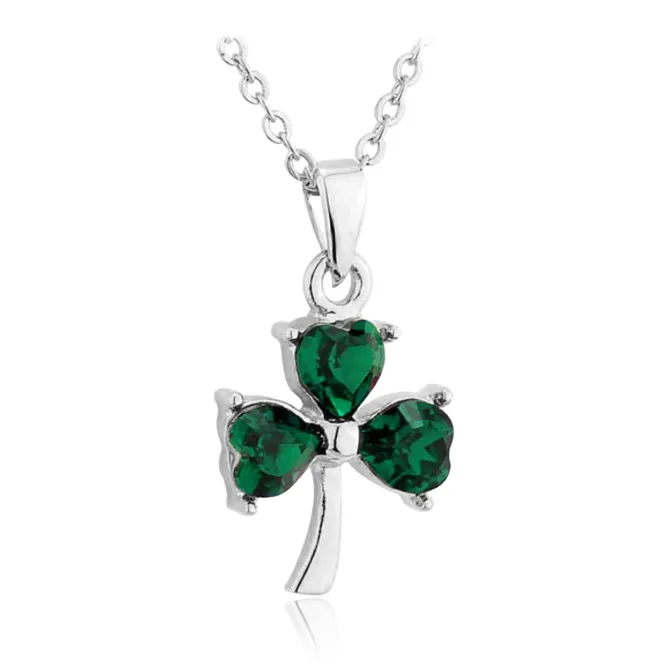 Silver Green Crystal Shamrock Pendant Necklace