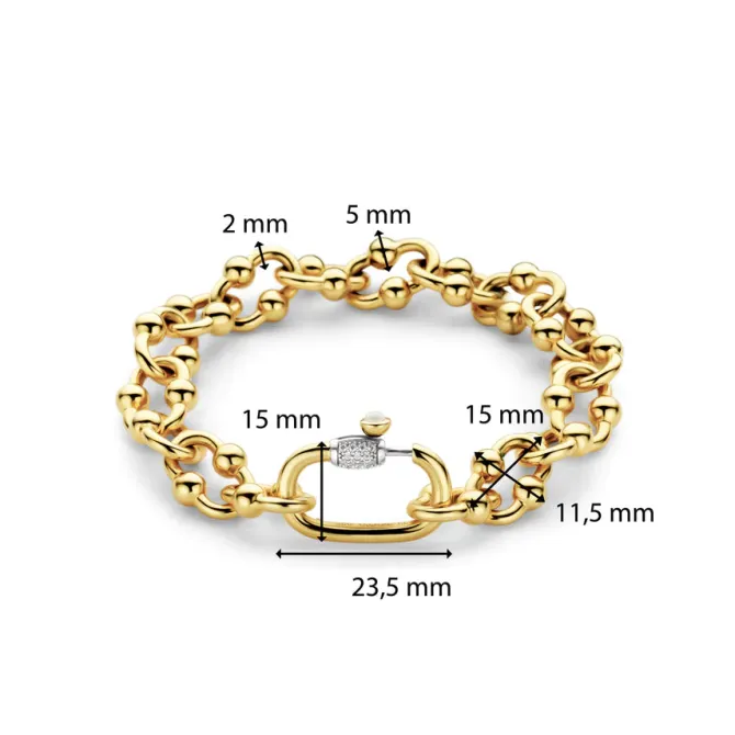This TI SENTO chunky gold-plated link bracelet flaunts a stream of our signature links with gold-plated bubbles. Crafted from the highest quality 925 sterling silver, it is then plated with yellow gold. This reinvented vintage piece is a mesmerizing eye-catcher. Available in sizes small, medium and large.