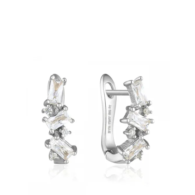 Shine from all angles with these sparkling silver huggie earrings. Featuring a cluster of cubic zirconia baguettes, they are this season’s must have.